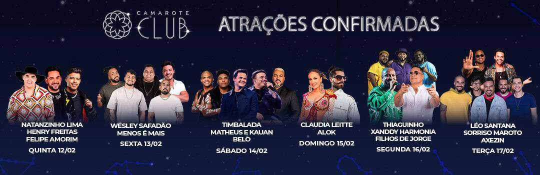Atrações Confirmadas no Camarote Club. Carnaval de Salvador 2026.